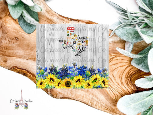 Texas Logo, Sunflower and Bluebonnets 20 oz. Stainless Steel Sublimation Tumbler